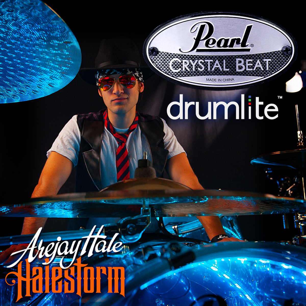 2015 May 07 Arejay Hale with Crystal Beat and Drumlite Arejay Hale of Halestorm performing on Crystal Beat Series in an Ultra Clear finish with Drumlite package.